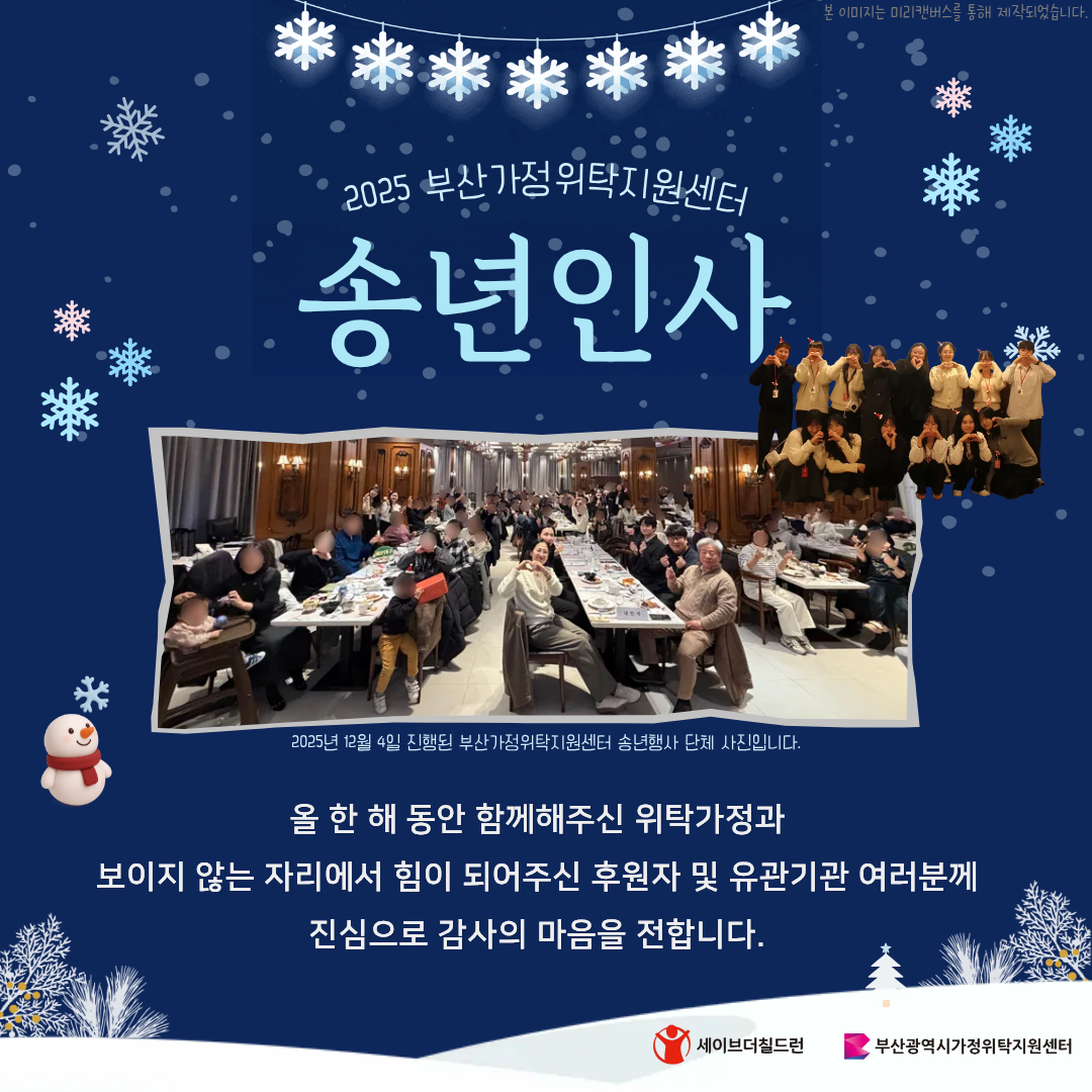 2025³â ÇÑ ÇØ µ¿¾È ºÎ»ê°¡Á¤À§Å¹Áö¿ø¼¾ÅÍ¿Í ÇÔ²²ÇØÁֽŠÀ§Å¹°¡Á¤°ú ÈÄ¿øÀÚ, À¯°ü±â°ü ¿©·¯ºÐ²² Áø½ÉÀ¸·Î °¨»çµå¸³´Ï´Ù ¢¾️